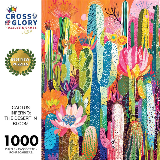 Cross & Glory - Cactus Inferno: The Desert in Bloom - 1000 Piece Jigsaw Puzzle for Adults | Vibrant Desert Cactus Puzzle | Best New Abstract Puzzle Challenge