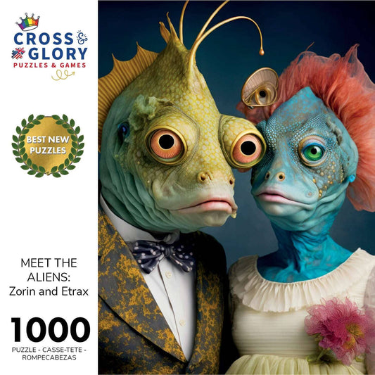 Cross & Glory - Meet The Aliens: Vaxion and Lirien - 1000 Piece Jigsaw Puzzle for Adults | Unique and Colorful Artwork of an Alien Couple for Puzzle Enthusiasts and Science Fiction Fans